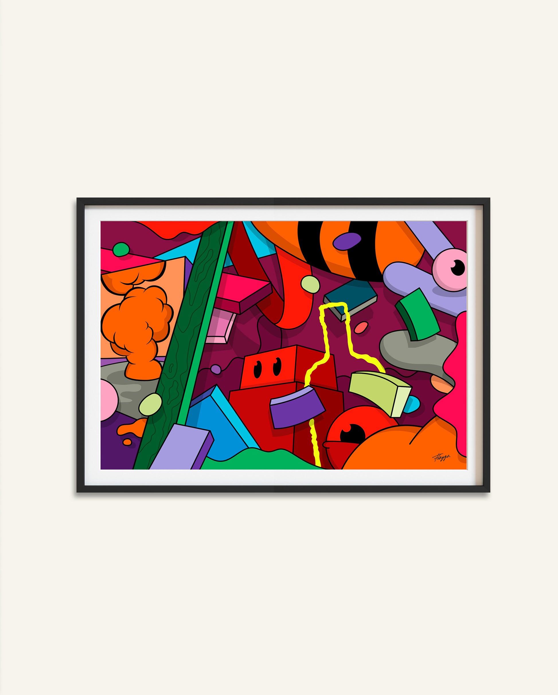 Fine art giclée print of the Liquid painting. Printed on 230 g natural art paper with a matte, uncoated finish and a lightly textured surface, ensuring a rich and vibrant display of colors. Printed in Sweden.
